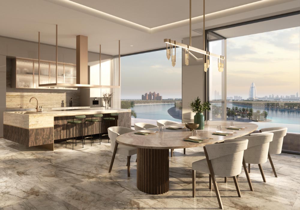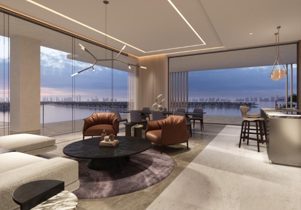 - Expansive living areas with panoramic views of Palm Jumeirah