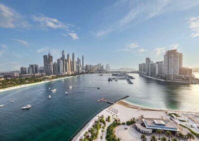 - Panoramic dual views: Marina, Ain Dubai, Harbour, Palm, Burj Al Arab, Burj Khalifa