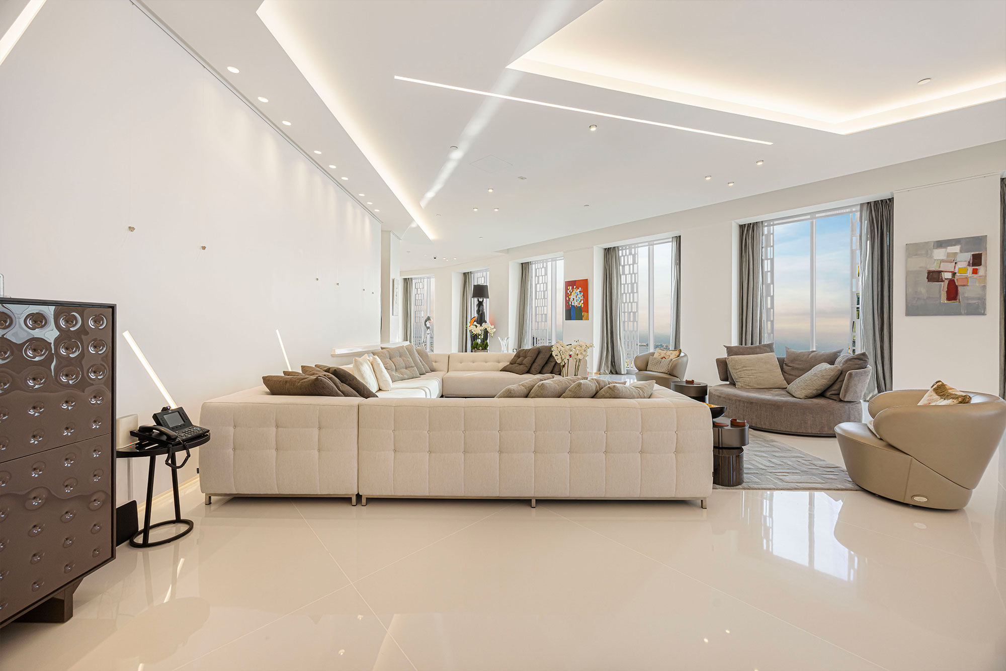 - Features: Spacious maid’s quarters, Large laundry room (Bosch and Electrolux washers and dryers), Storage room and dedicated dog shower, Whole-apartment water filtration system, Incredible open views with high ceilings throughout, Fully automated smart home (lighting, shades, AC, sound and video), 3 private entrances with 2N video intercom & internal PBX system, Premium doors, hinges, and high-quality fittings